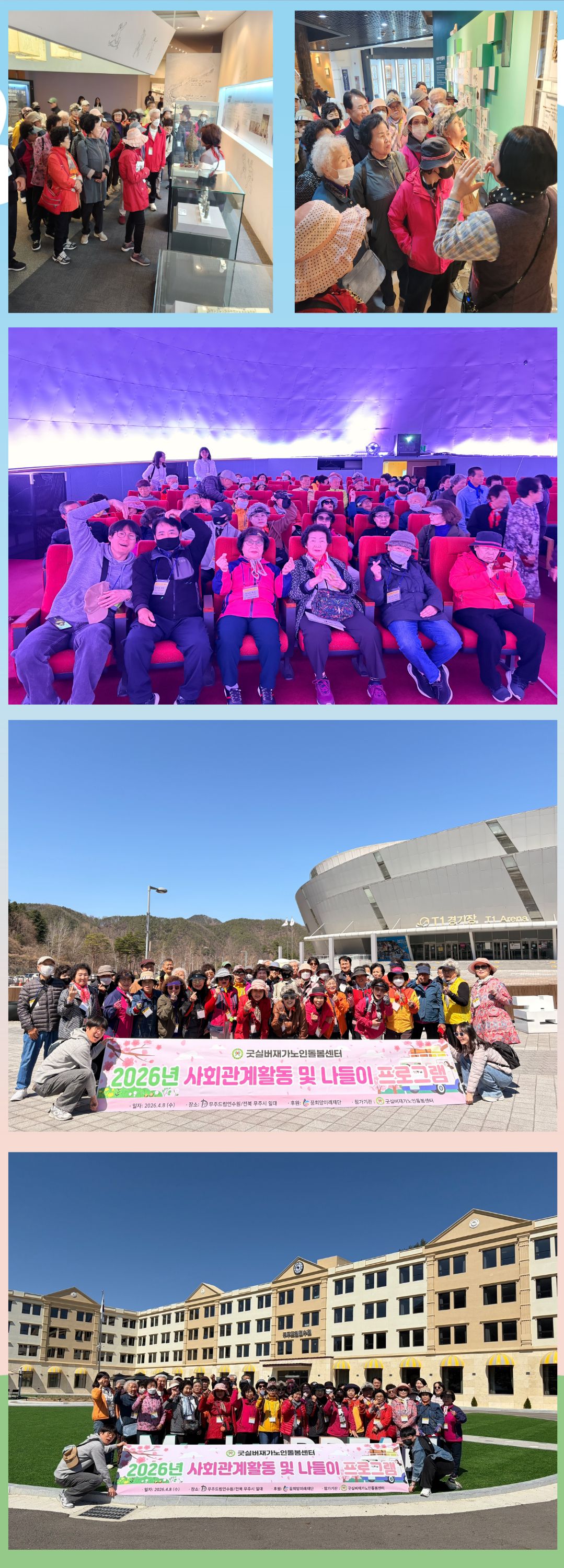 ![]() ![]() 1. »ç¾÷¸í : »çȸ°ü°èȰµ¿ ¹× ³ªµéÀ̼ºñ½º 2. ÀÏ ÀÚ : 2026. 4. 8 (¼ö) 3. Àå ¼Ò : ÀüºÏ ¹«ÁÖÀÏ´ë(¹«Áֵ帲¿¬¼ö¿ø, űǵµ¿ø, ¹«ÁÖ°ïÃæ¹Ú¹°°ü) 4. Âü¿©Àοø : ¾î¸£½Å 40¸í(Àç°¡27¸í ¸Âµ¹13¸í). Á÷¿ø 5¸í ÃÑ 45¸í 5. Ȱµ¿³»¿ë : º½À» ¸Â¾Æ ¾î¸£½Åµé²² Àϻ󿡼 ¹þ¾î³ ¿©°¡È°µ¿ ±âȸ¸¦ Á¦°øÇÏ¿© Á¤¼Àû ¾ÈÁ¤°ú Áñ°Å¿òÀ» ´À³¢°í, ¼·Î °£ÀÇ ¼ÒÅë°ú ±³·ù¸¦ ÁõÁøÇϰíÀÚ ÇÔ. ÀüºÏ ¹«Áֽà ÀÏ´ë(űǵµ¿ø, ¹«ÁÖ°ïÃæ¹Ú¹°°ü, ¹«Áֵ帲¿¬¼ö¿ø)¿¡¼ ¾î¸£½Åµé°ú ÇÔ²² º½ ³ªµéÀ̸¦ ´Ù³à¿Ô½À´Ï´Ù. ²ÞÈñ¸Á¹Ì·¡ Àç´ÜÀÇ ÈÄ¿øÀ¸·Î ÁøÇàµÈ À̹ø ³ªµéÀÌ´Â µû¶æÇÑ º½³¯ ¼Ó¿¡¼ ¿ôÀ½°ú Áñ°Å¿òÀÌ °¡µæÇÑ ½Ã°£ÀÌ µÇ¾ú½À´Ï´Ù.