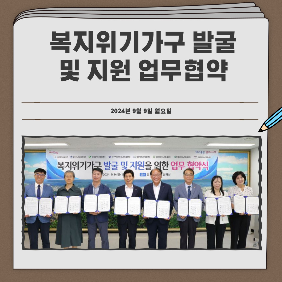 ![]() 9¿ù9ÀÏ ´Þ¼±¸Ã»°ú ´Þ¼±¸¿¡ À§Ä¡ÇÑ Àç°¡³ëÀε¹º½¼¾ÅÍ 7°³¼Ò°¡ ³ëÀθÂÃãÇü ¼öÇà±â°ü°ú º¹ÁöÀ§±â°¡Á¤ Áö¿øÀ» À§ÇÑ ¾÷¹«Çù¾àÀ» ü°áÇÏ¿´½À´Ï´Ù.